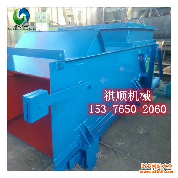 K型给料机由机架、底板(给料槽)、传动平台、漏斗、闸门、托辊组成,当电机开动后经弹性联轴器,减速机、曲柄连杆机构拖动倾斜5度的底板,在辊上作直线往复运动,把煤或其它磨琢性小,粘性不大的松散粒状,粉状物料从给料设备中均匀地卸到受料设备中