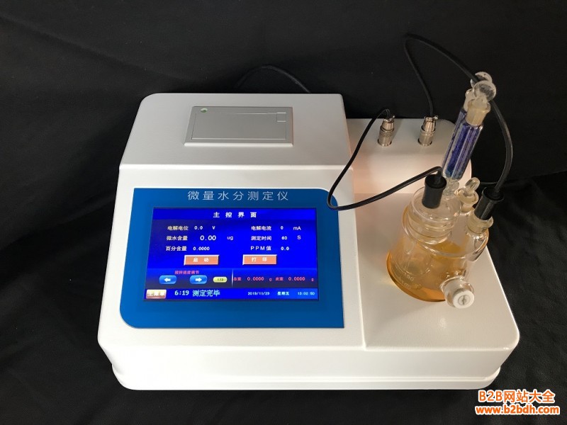 MS6000型卡尔费休库仑法微量水分测定仪根据卡尔菲休库仑法(电量法)设计,采用7.0英寸800*480像素真彩TFT-LCD大屏幕彩色显示器及人体感应式触摸屏,主处理器为TI公司Cortex-A8内核,1GHz主频AM3354处理器,内置多种含水量运算公式方便不同用户的需求,配备高效微型打印机,内置大容量存储器,用户可以方便的查阅和打印测试报告。已广泛应用于电力、石油、化工、医药等部门,是我公司推出的性价比很高的产品之一。MS6000微量水分测定仪特性