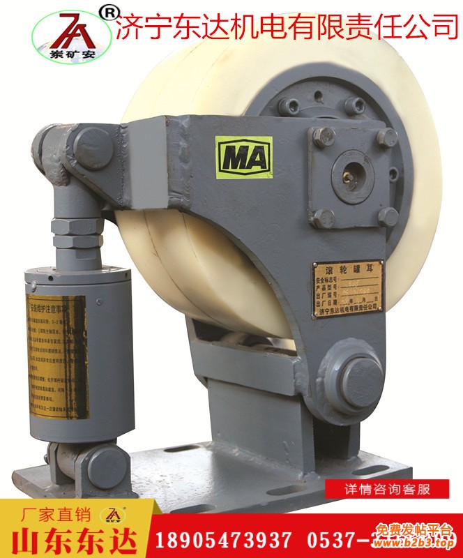 L35单轮滚轮罐耳的配件:滚轮、罐耳、导向轮、罐道轮、管道轮、轮皮、支架、缓冲装置(弹簧)、底座。L系列滚轮罐耳配合罐笼使用,一个罐笼需要安装四组,一组三个,共计十二个。